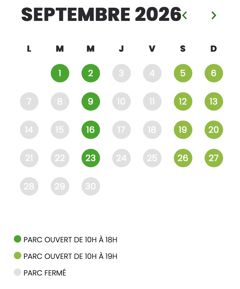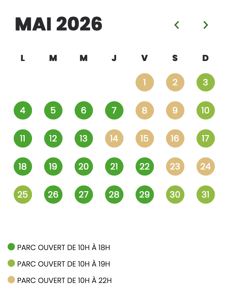 Pensez à vérifier l’horaire de fermeture le jour de votre visite, car la fermeture peut être modifiée en fonction de l’affluence ou de tout autre évènement. Ceci est précisé en cours de journée dans l’application mobile du parc.
